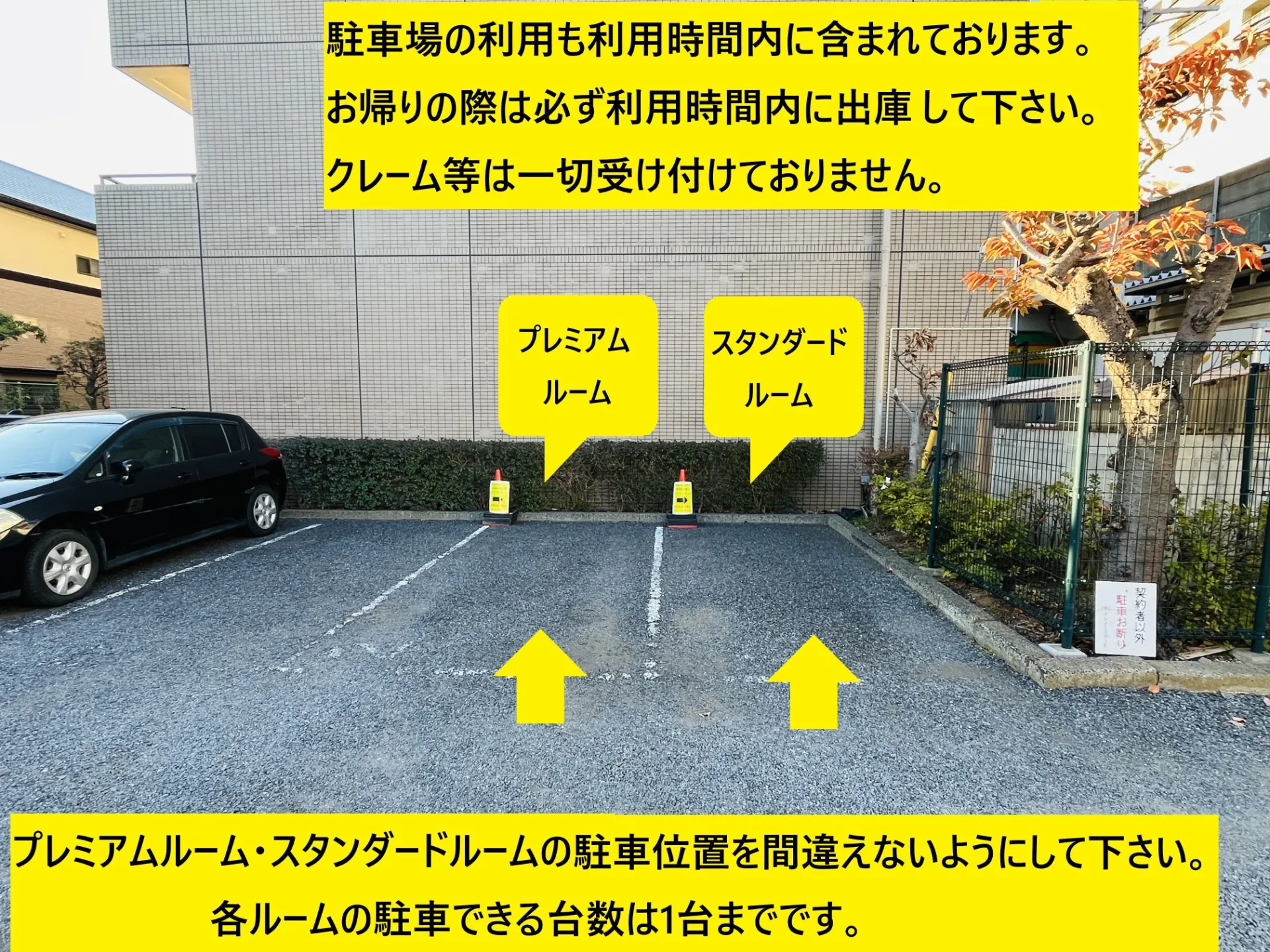 プレミアムルームとスタンダードルームで駐車場の位置が決まっています。